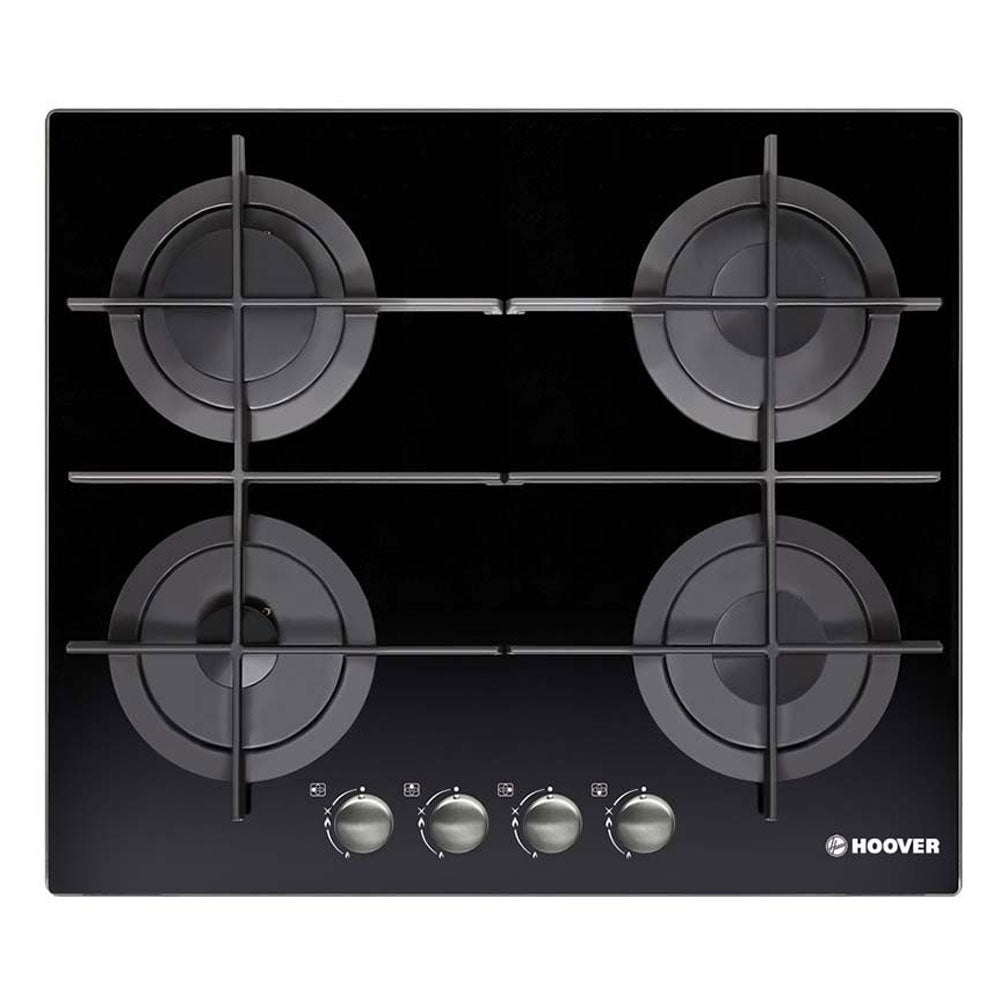 بوتاجاز مسطح بلت إن هوفر 4 شعلة غاز 60 × 60 سم HGV64STCGB - أسود زجاجي