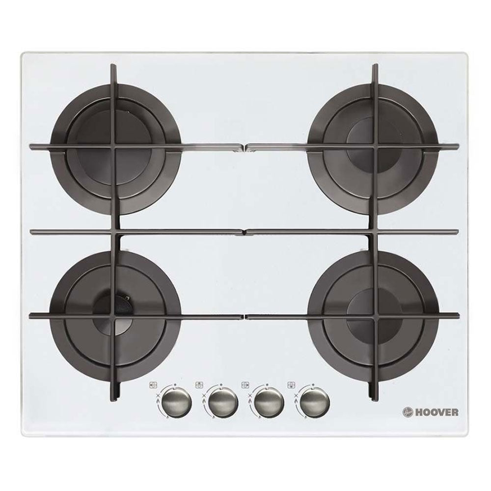 بوتاجاز مسطح بلت إن هوفر 4 شعلة غاز 60 × 60 سم HGV64STCGW - أبيض زجاجي